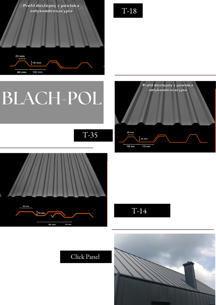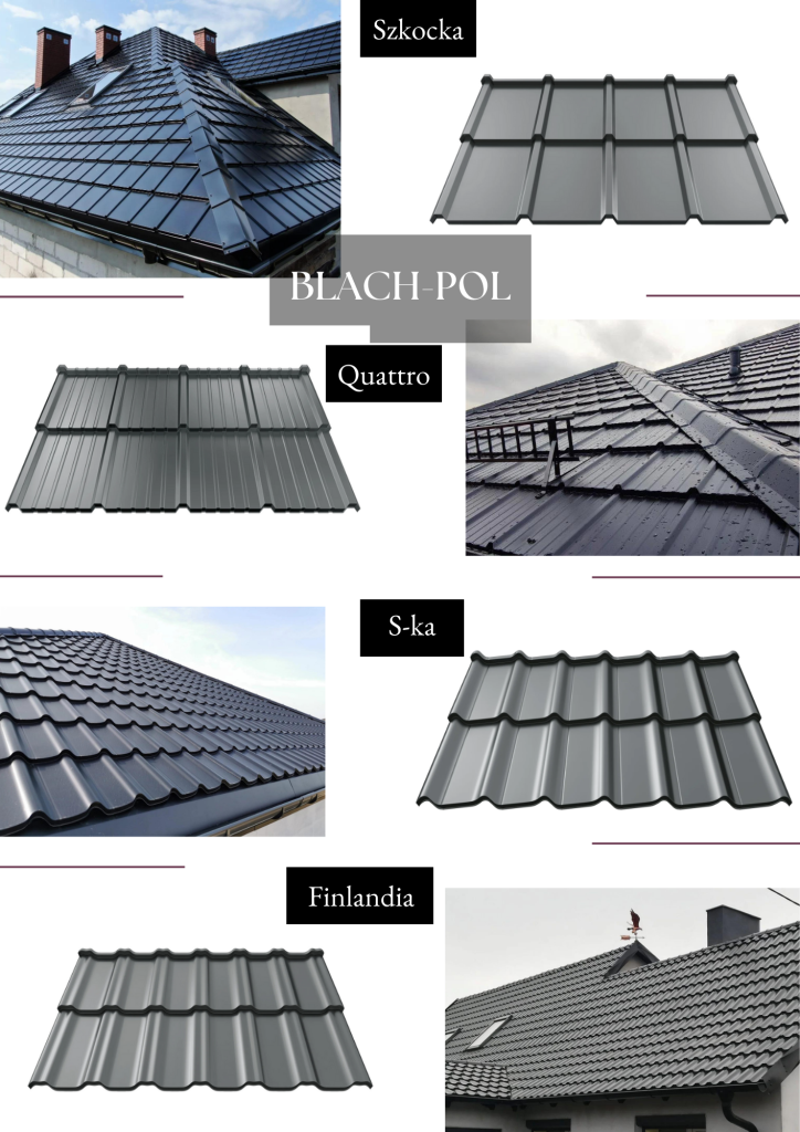 1.Zamówienie musi zawierać kompletne pokrycie dachowe, tzn: blachodachówkę/blachę trapezową/blachę na rąbek, blachę płaską, orynnowanie, akcesoria.