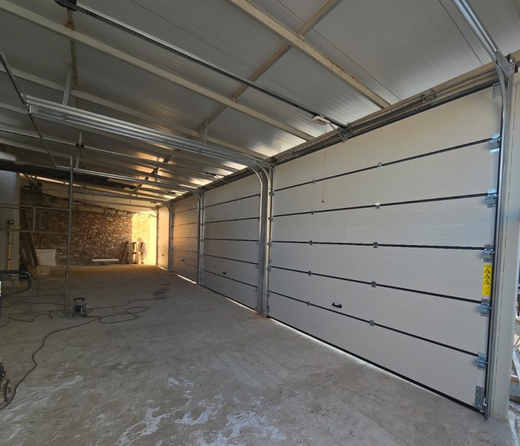 Poniżej przedstawiamy zdjęcia po montażu bram garażowych segmentowych UniPro od producenta Wiśniowski. Bramy posiadają strukturę panela Woodgrain i są w kolorze antracytowym RAL 7016. Klient zdecydował się na napęd wraz z szyną SPARK.