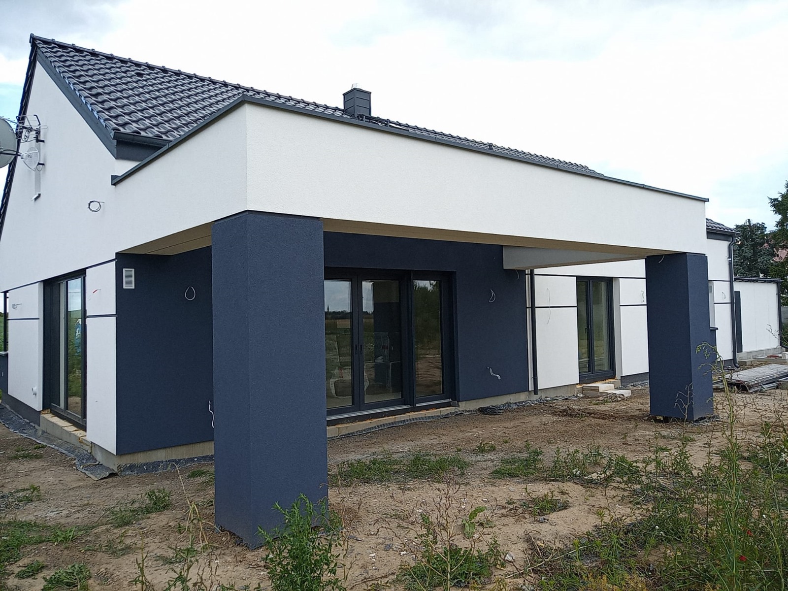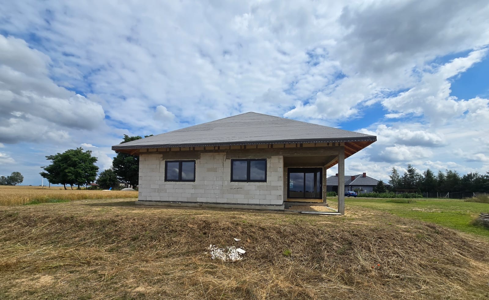 Tak prezentuje się ukończona już budowa u naszego Klienta. We wcześniejszym etapie zostały zamontowane przez naszą firmę okna drzwi oraz rolety. Klient zdecydował się również na zakup płyty poliwęglanowej oraz dodatków z naszej firmy. Daszek stanowi idealne wzbogacenie budowy o design oraz funkcjonalność.