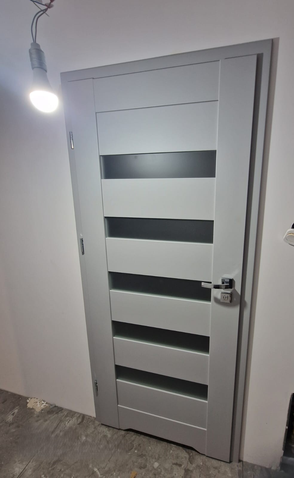 Tym razem prezentujemy zdjęcia po montażu drzwi wewnętrznych od Erkado. Wariant Magnolia 1 jest w kolorze popielatym wraz z szybą hartowaną mleczną awers.