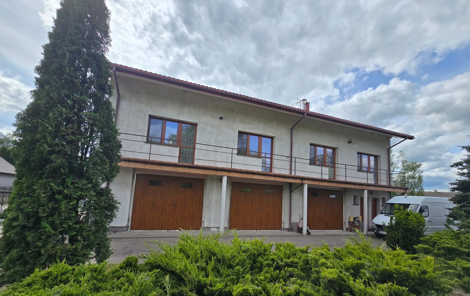 Krótka fotorelacja po montażu bram rozwiernych dwuskrzydłowych Wiśniowski z wypełnieniem pionowym oraz symetrycznym podziałem skrzydeł. Bramy są w kolorze złoty dąb.