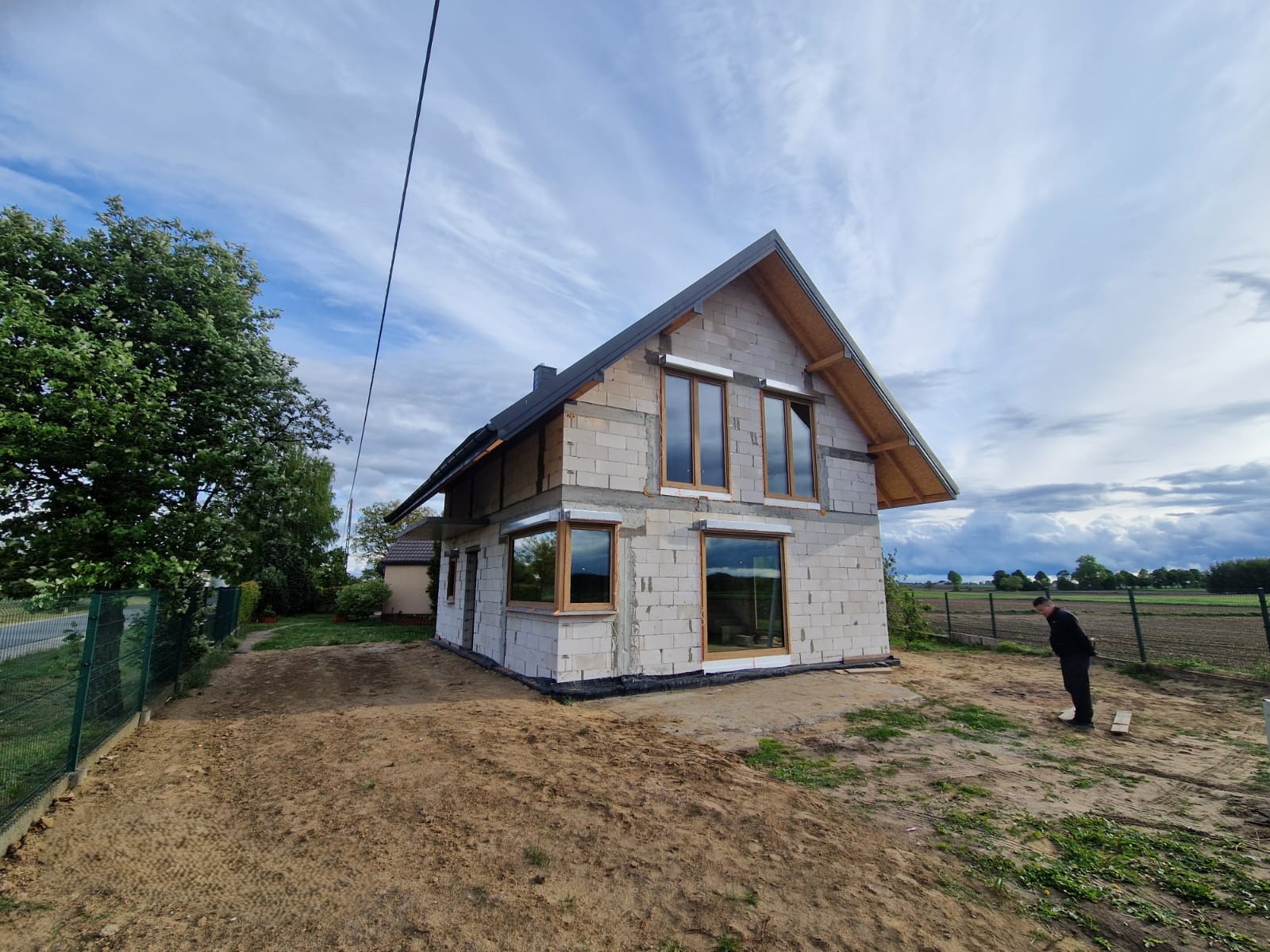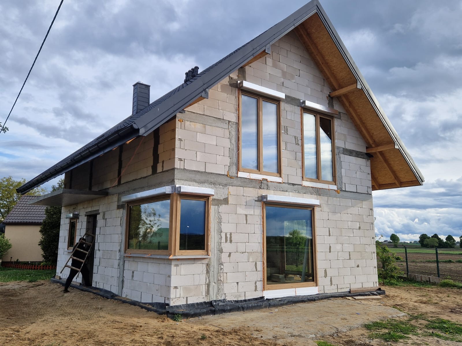 Klient zdecydował się na stolarkę okienną oraz drzwi zewnętrzne DRUTEX w systemie Iglo Energy Classic. Okna oraz drzwi są w okleinie zewnętrznej antracytowej oraz wewnętrznej białej wraz z ramką dystansową Swisspacer Ultimate. Musimy przyznać, że całość świetnie się prezentuje!