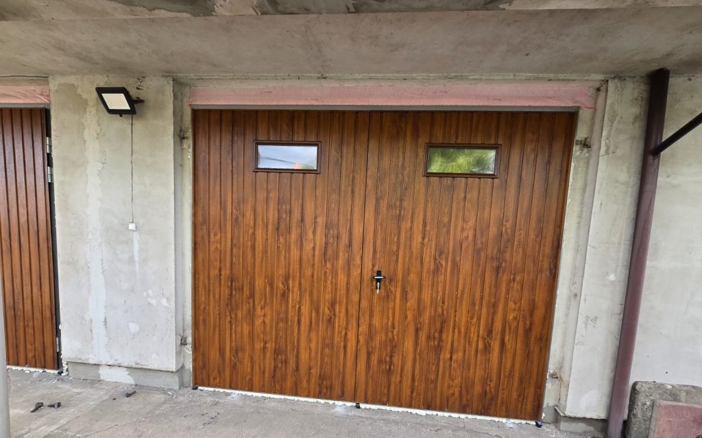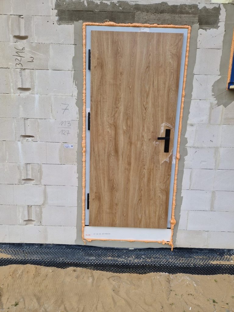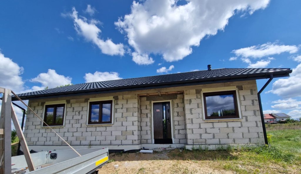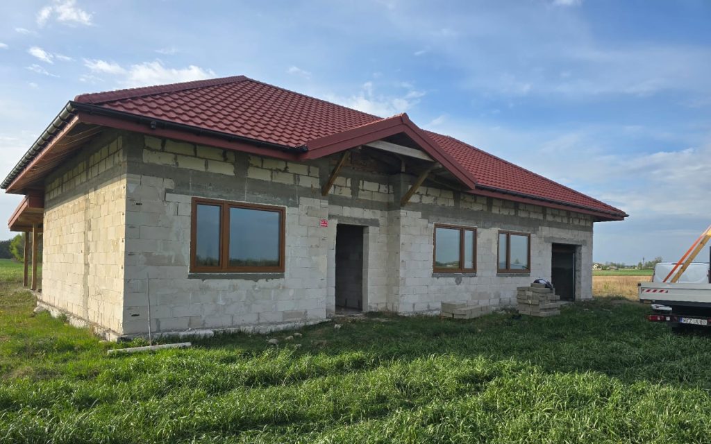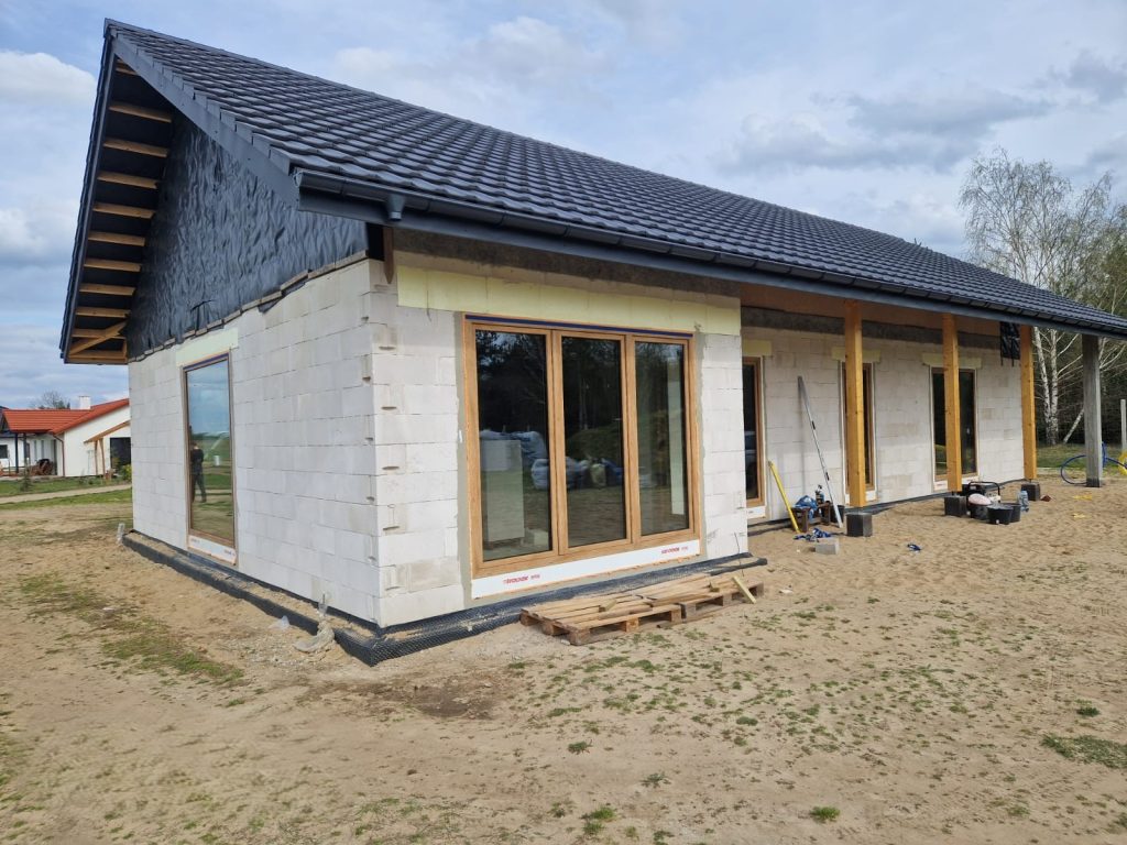 Kolejna fotorelacja z montażu, a tam stolarka okienna Drutex Iglo Energy Classic, w okleinie zewnętrznej i wewnętrznej złoty dąb oraz brama garażowa segmentowa UniPro w kolorze złoty dąb z napędem i szyną SPARK o strukturze panela Woodgrain.