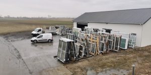 Zamontowane zostały drzwi WIKĘD, brama BIG TOR BRAMY oraz stolarka okienna DRUTEX S.A.