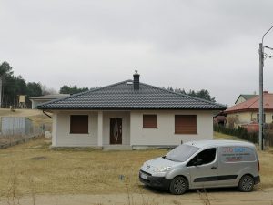 Priorytetem klienta był zakup energooszczędnych okien IGLO ENERGY DRUTEX S.A. oraz szczelny montaż w wykorzystaniem taśm oraz ciepłych profili. Drzwi zewnętrzne WIKĘD Rolety Portos TR7 Brama garażowa BIG TOR BRAMY Blachodachówka Savanna Bratex Dachy Za prawidłowy montaż pokrycia dachowego odpowiedzialna była firma DeeM Brawo